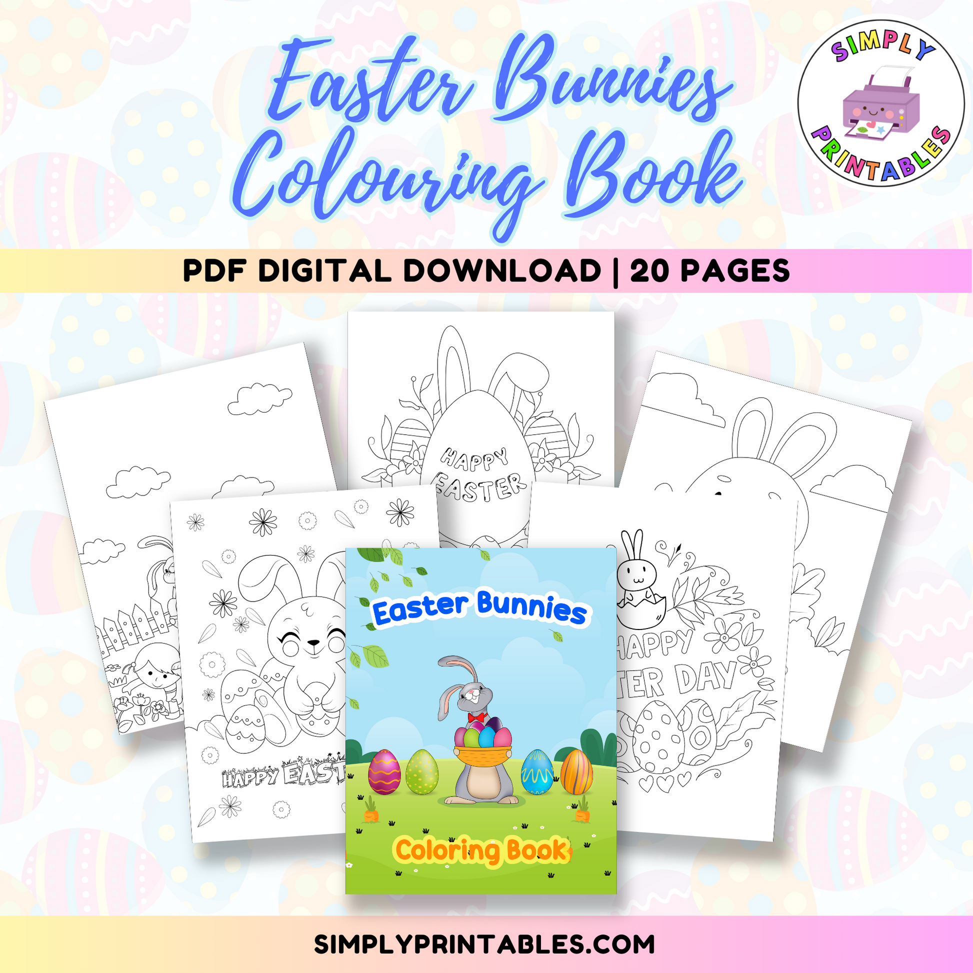 These colouring pages feature Easter eggs, bunnies, chicks, flowers and more!